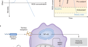 Oxidative stress has long been linked to disease development and accelerated aging, prompting professionals in the biomedical field to suggest the use of antioxidants to prevent or even reverse these conditions. But growing clinical evidence is showing that this in fact might not be effective, calling for additional investigation to prove that certain molecular factors involved in oxidation, specifically reactive oxidative species (ROS), are not detrimental. In “Bedside to Bench,” Michael Ristow highlights recent human studies with antioxidant supplementation that have failed to show any improvement in health span. Moreover, other relevant evidence has pointed towards a beneficial role for ROS in lifespan under stress conditions, although how this is mediated and regulated inside the cell is not fully understood. In “Bench to Bedside,” Hiroyuki Kawagishi and Toren Finkel peruse the biological and signaling underpinnings of ROS in living organisms, which suggest different amounts of ROS may explain their dual role in lifespan and disease and the lack of effect of antioxidants in the body. The authors propose targeting pathways and molecules involved in removing cellular damage rather than ROS, which could make therapies to increase lifespan more effective and preclude diseases caused by oxidation and aging.