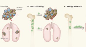 Macrophages engulf microbes and cellular debris to protect us from disease and help repair wounded tissues. In cancer, they also infiltrate the tumor, but studies in humans and mice now uncover more sinister roles for these immune cells in cancer. In 'Bedside to Bench', Christiana Ruhrberg and Michele De Palma scrutinize a clinical study where the presence of macrophages correlates with a high risk of disease progression in people with Hodgkin's lymphoma, indicating a clinical value of macrophages as biomarkers of survival. The authors also emphasize how characterizing of the mechanisms by which subpopulations of macrophages promote tumor cell motility and angiogenesis might help in the development of antiangiogenic therapies to stop tumor progression. In 'Bench to Bedside', Joseph Qualls and Peter Murray examine a study that shows how stopping migration of macrophages into the tumor can impair tumor regrowth after radiation treatment.