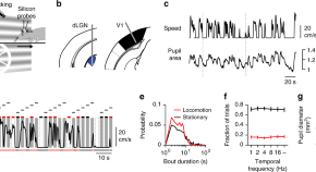 Locomotion is known to modulate neuronal firing in both the visual thalamus (LGN) and V1. Here, the authors characterize the LGN modulation in detail and report that neurons with transient ON responses for high spatial frequency stimuli show the strongest gain modulation.