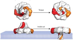 Cryo-EM, crystallography, biochemical experiments and computational approaches have been used to study different intermediate states of the Aeromonas hydrophila toxin aerolysin en route to pore formation. These results reveal that an unexpected and marked rotation of the core aerolysin machinery is required to unleash the membrane-spanning regions.