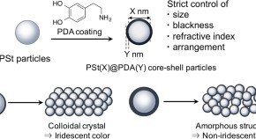 Melanin, a black component of human hair, plays an important role in bright structural colorations in nature. Polydopamine-based artificial melanin particles, inspired by natural melanin and its important role in structural coloration, were used to produce bright structural colors by controlling light reflection and absorption. A variety of structural coloration characteristics have become possible through our investigations of the assembly structure, composition, shape, and application of artificial melanin particles.