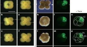 Most animals display internal and/or external left–right asymmetry. The gastropod Lymnaea stagnalis has both sinistral and dextral snails within a species; the chirality is hereditary, but the gene(s) and mechanisms for handedness-determination are not yet identified. In L. stagnalis, the chiral blastomere arrangement at the eight-cell stage is now shown to determine left–right asymmetry throughout development, acting upstream of the Nodal signalling pathway.