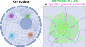 Biomolecular liquid‒liquid phase separation (LLPS) is a critical process shaping cellular organization, particularly within the densely packed environment of the nucleus. Repetitive genomic elements, constituting nearly half of the human genome, play a pivotal role in regulating LLPS through interactions with associated proteins and RNAs. These sequences act as dynamic platforms for phase separation, influencing nuclear architecture and cellular phenotypes. This review highlights instances of LLPS formation within repetitive elements and explores their contributions to intermediate pathways and biomolecular complexes.