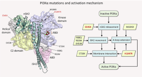 Oncogenic PI3Kα variants are key drivers of tumorigenesis; however, the conformational landscape of these mutants is not well characterized. Here, the authors use atomistic molecular dynamics simulations to show that double mutations in PI3Kα induce significant conformational shifts, revealing cryptic druggable pockets within PI3Kα and providing a rationale for using allosteric drug combinations in targeted therapy.