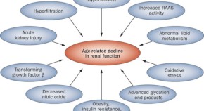 Scarring occurs in the kidneys of most people as they age, which is associated with a gradual decline in renal function. Several genetic and environmental factors have been found to accelerate the age-related decline in kidney function. In this Review, the authors describe the current clinical and tissue factors that are associated with progressive renal aging and highlight the factors that might slow this process.
