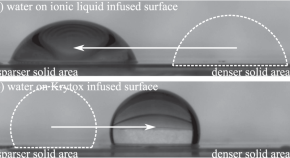 Droplet self-propulsion on surfaces with wetting gradients is relevant for wide-ranging practical applications, and such motion is typically unidirectional. Here, the authors show how bidirectional motion of droplets can be achieved and controlled on liquid-infused surfaces with texture gradients.