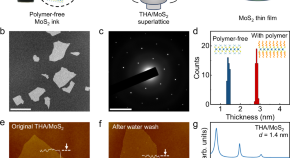 The technological applicability of 2D semiconductor thin films is normally limited by the trade-off between their synthesis temperature and electrical performance. Here, the authors report a low-temperature polymer-free solution-based method to deposit high-mobility wafer-scale MoS2 thin films, showing large-scale logic circuits and heterogeneous device integration.