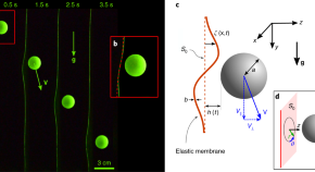 • A rigid particle moving along a soft wall feels a repulsive force that can reduce its drag. Evidence now suggests that for thin enough walls the particle can be displaced appreciably—a finding that may have implications for biological membranes.