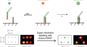 Super-resolution microscopy has enabled optical imaging of individual biomolecules on the nanometre scale. Now, a new method has been developed that allows active manipulation of single-molecule targets on visualization in a sequential manner. This method, called ‘Action-PAINT’, combines real-time super-resolution microscopy (DNA-PAINT) and photoinducible crosslinking chemistry to deliver a single-molecule cargo with <30 nm selectivity.