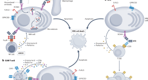 Novel immunotherapeutic strategies based on targeting specific tumour-associated antigens with antibody–drug conjugates (ADCs), chimeric antigen receptor (CAR) T cells and bispecific T cell engagers (BTEs) are revolutionizing the treatment of multiple myeloma. In this Review, the authors describe the clinical experience to date with ADCs, CAR T cells and BTEs targeting B cell maturation antigen, G protein-coupled receptor family C group 5 member D and Fc receptor-like protein 5. In addition, they discuss the mechanisms of resistance to such therapies, and potential strategies by which resistance could be overcome to improve patient outcomes.