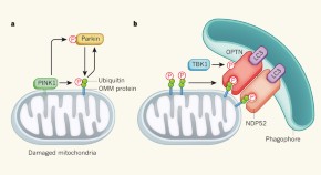 Ubiquitin, known for its role in post-translational modification of other proteins, undergoes post-translational modification itself; after a decrease in mitochondrial membrane potential, the kinase enzyme PINK1 phosphorylates ubiquitin at Ser 65, and the phosphorylated ubiquitin then interacts with ubiquitin ligase (E3) enzyme parkin, which is also phosphorylated by PINK1, and this process is sufficient for full activation of parkin enzymatic activity.