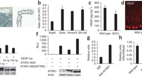 Spinocerebellar ataxia 1 is a neurodegenerative disease caused by a CAG trinucleotide expansion in the ATXN1 gene encoding the protein ataxin-1. Puneet Opal and his colleagues find that ataxin-1 represses the expression of the angiogenic and neurotrophic factor vascular endothelial growth factor (VEGF) and that VEGF levels are decreased in animals with motor impairment. Overexpression or infusion of VEGF improves motor performance and pathology, suggesting VEGF may have therapeutic potential in this disease.