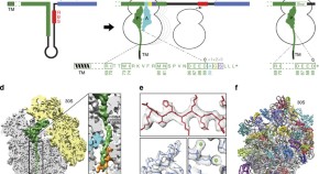 • Previous studies argued that nascent polypeptide chains can form secondary structure in the ribosome exit tunnel despite spatial constraints. Using single-particle cryo-EM reconstructions of eukaryotic ribosomes carrying nascent chains with high helical propensity, density consistent with helix formation is now observed in the exit tunnel as are interactions with tunnel proteins.