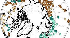 Variations in the seasonal cycle of temperatures at the Earth's surface are spatially mapped on both land and sea, and trends in the recent past (1954–2007) are compared with those occurring earlier (1900–1954). Assuming that the earlier part of the temperature record is dominated by natural variations, the recent trends seem highly anomalous: temperatures on land show a shift to earlier seasons by 1.7 days, and the amplitude of the cycle has decreased in this period.