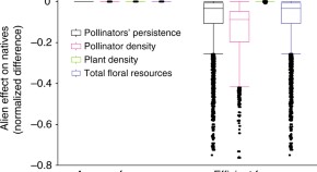 • The role of adaptive foraging in the threat of invasive pollinators to plant-pollinator systems is difficult to characterise. Here, Valdavinos et al. use network modelling to show the importance of foraging efficiency, diet overlap, plant species visitation, and degree of specialism in native pollinators.