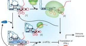 • The RNA-activated protein kinase PKR inhibits translation initiation by sensing long viral double-stranded RNA. A new report indicates that PKR is also activated by a cellular mRNA, but only when ribosomes are not initiating translation.