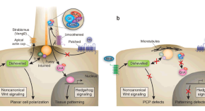 Mutations in components of the planar cell polarity pathway in mammals give rise to neural tube defects, anomalous cochlear hair cell stereocilia and kidney cysts. A new study suggests that two planar cell polarity components initially characterized in flies are required for ciliogenesis and Hedgehog signaling in frog embryos, providing insights into the mechanisms governing positioning and growth of the ciliary axoneme.