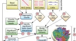 Chrom3D is a computational platform designed to simulate the spatial positioning of chromosome domains relative to each other and to the nuclear periphery, starting from, for example, chromosome conformation capture and lamin ChIP-sequencing data.