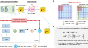 Reaction–diffusion processes, which can be found in many fundamental spatiotemporal dynamical phenomena in chemistry, biology, geology, physics and ecology, can be modelled by partial differential equations (PDEs). Physics-informed deep learning approaches can accelerate the discovery of PDEs and Rao et al. improve interpretability and generalizability by strong encoding of the underlying physics structure in the neural network.
