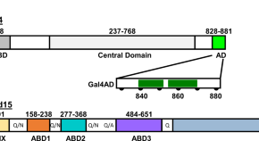 The intrinsically disordered acidic activation domain (AD) of the yeast transcription factor Gal4 acts through binding to the Med15 subunit of the Mediator complex. Here, the authors show that Gal4 interacts with Med15 through an identical fuzzy binding mechanism as Gcn4 AD, which has a different sequence, revealing a common sequence-independent mechanism for AD-Mediator binding. In contrast, Gal4 AD binds to the Gal80 repressor as a structured polypeptide, which strongly suggests that the structured binding partner dictates the type of protein–protein interaction for an intrinsically disordered protein.