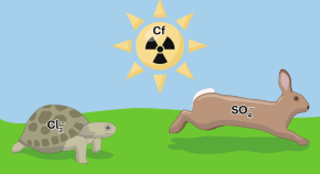 Radiation-induced redox chemistry is an important consideration for practical applications such as production and storage of nuclear fuels. Furthering our fundamental understanding of radioactive elements, here, the decay kinetics of californium in the presence of common anionic compounds is studied.