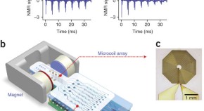 A major challenge in biomedicine is the rapid and accurate measurement of biomarkers in biological samples. Here, Lee et al. describe a chip-based NMR diagnostic platform that can perform sensitive and selective measurements on small volumes of unprocessed biological samples. This miniaturized biosensing system is high throughput, low cost and portable, and its utility is shown in a number of biomedical applications.