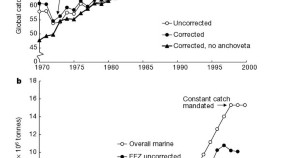 The health of marine ecosystems is traditionally assessed by measuring the mean trophic level (MTL) of fishery catches. These authors model catch MTL and actual ecosystem MTL, and show that the former is not a good measure of the latter. They then show that MTLs have actually been increasing in recent years, but that fisheries are still at risk of collapse because all trophic levels have been similarly affected.