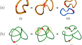 What makes a given knot's unlinking pathway more likely to appear in certain topological decay processes—from DNA to vortex dynamics? Here, the authors introduce a measure of topological complexity as distance in a suitably defined knot polynomial space, allowing them to quantify the probability of decay pathways as geodesic flows in this space.