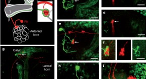 In Drosophila, olfactory sensory neurons project to spatially invariant loci (glomeruli) and stereotyped circuitry is maintained in projections to a brain centre thought to mediate innate behaviours; here it is shown that neurons of the mushroom body, a centre that translates olfactory information into learned behaviours, integrate input from an apparently random combination of glomeruli, which could allow the fly to contextualize novel sensory experiences.