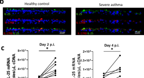IL-25 and its receptor are expressed in airway epithelial cells of healthy individuals and patients with asthma and antibody-mediated blockade of IL-25 enhances antiviral immunity and blocks virus-exacerbated asthma responses.