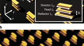 Nanoantennas may be important for future photonic circuits; they combine an emitter or detector with free-space propagation of light. Dregelyet al. fabricate an array of 3D optical Yagi–Uda nanoantennas and show that radiofrequency antenna array concepts applied to the optical regime can provide improved directional properties.