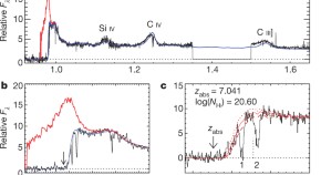 The spectrum of a quasar at redshift 7.04 reveals absorption from a large column of foreground neutral hydrogen with no corresponding heavy elements; this absorbing gas is either diffuse and intergalactic but has not yet been ionized by starlight at this early epoch, or it is gravitationally bound to a proto-galaxy that has a chemical abundance <1/10,000 the solar level.