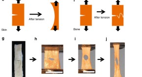 It is known that skin has a large tear resistance, but little is known of the mechanism behind this. Here, the authors carry out a structural analysis of rabbit skin to show how the deformation of collagen fibrils in the skin results in a strong resistance to tear propagation.