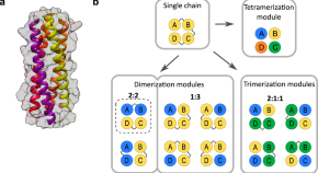 Coiled-coil protein origami (CCPO) is a strategy for the design of polyhedral cage-shaped protein folds based on coiled-coil (CC) dimer-forming peptides. Here, the authors show that CCPO proteins fold in a multistep process governed by the spatial distance between CC modules in the primary sequence and subsequent folding intermediates, which enables the use of identical CC modules for the CCPO tetrahedron design.