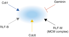 Recent work has clarified how higher eukaryotic cells 'licence' DNA replication precisely once per cycle. An inhibitor, geminin, prevents replication before mitosis by inhibiting the replication factor Cdt1. Degradation of geminin in anaphase allows Cdt1 to promote binding of MCM proteins, and hence DNA replication.