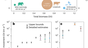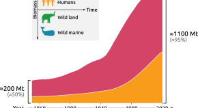 Here, the authors estimate mammalian biomass from the 1850’s to today, tracking an increase of over five-fold in human and domesticated mammal biomass and a two-fold decrease in wild mammal biomass. Recent trends of increase in some wild marine mammals are seen to be still far below historic levels. The results of this study are caveated due to limited historic data but have implications for conservation efforts.