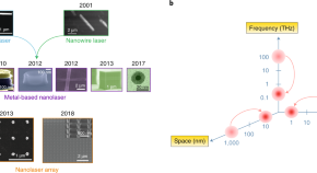 A key challenge is to realize ultracompact lasers that can directly generate coherent optical fields at the nanometre scale, far beyond the diffraction limit. Surface plasmons could be used to tightly confine light on very short lengthscales, but so far this approach has been hampered by ohmic losses at optical frequencies. The experimental demonstration of nanometre-scale plasmonic lasers is now reported, realized using a hybrid plasmonic waveguide — these lasers can generate optical modes a hundred times smaller than the diffraction limit.
