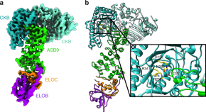 Multi-subunit Cullin (CUL)-RING ligases (CRL) form the largest family of E3 ligases and are composed of a substrate receptor, a CUL, and a RING-box (RBX) protein. Here, the authors use cryo-EM and HDX-MS to characterise the ASB9 CUL-RING E3 ligase and present the structure of ASB9-ELOB/C bound to the substrate creatine kinase and the full-length CUL5 structure in complex with RBX2, and they propose a revised allosteric mechanism for CUL-E3 ligase function.