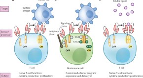 Technologies for engineering immune cells to recognize features on cancer cells are transforming oncology. Synthetic biologists now expand this approach by conferring therapeutic functions to nonimmune cells and by programming cells to sense and respond to a new class of physiological cues.