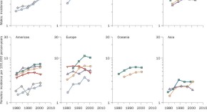 Overall kidney cancer incidence shows signs of stabilizing, or even decreasing worldwide, except in the US, where renal cell carcinoma incidence continues to rise. This Review by Chow and colleagues discusses the descriptive incidence and changing prevalence of risk factor patterns of adult kidney carcinoma, both internationally and in the US.