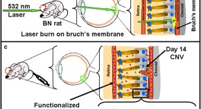 Age-related macular degeneration (AMD) is a major cause of blindness. Now, the eosinophil/mast cell chemokine receptor CCR3 is shown to be specifically expressed in choroidal neovascular endothelial cells in humans with AMD, and targeting CCR3 or its ligands in mice inhibits the choroidal neovascularization that underlies AMD. In the mouse model, CCR3 blockade was more effective and less toxic than VEGF-A neutralization, which is currently in clinical use.