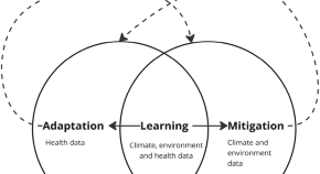 Despite its rapid advancement, digital health has little considered issues of climate change or environmental degradation. As the digital health community begin to engage with this critical issue scholars have started mapping progression in the field, typically focusing on the relationship between digital health as it applies to climate and/or environmental mitigation or climate adaptation. In this Comment, we argue that climate and environment learning for mitigation and adaptation constitutes a critical yet overlooked dimension intersecting mitigation and adaptation strategies, warranting deliberate attention. This learning category is the systematic and transparent approach that applies structured and replicable methods to identify, appraise, and make use of evidence from data analytics across decision-making processes related to mitigation and adaptation, including for implementation, and informs the exchange of new best practices in a post-climate era. The WHO’s Digital Health Classification framework offers a good option for ultimately formalising learning into practice. As a foundational step, however, learning needs to be conceptualised and developed into its own research agenda, organised around a shared language of metrics and evidence. We call on actors in the digital health field to develop this concrete strategy and initiate this process.