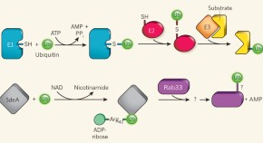 Legionella pneumophila (LP) employs the metaeffector SidJ to suppress the toxicity of SdeA and other LP SidE effector family members by catalysing the glutamylation of the catalytic Glu residue. Here, the authors present the cryo-EM structures of SidJ in complex with SdeA in two different states, which together with mutagenesis analysis provide insights into the substrate recognition and the mechanism of protein glutamylation by SidJ.