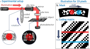 Optoacoustic tomography (OAT) is a hybrid imaging modality that combines optical excitation with ultrasound detection. However, OAT is limited by the lack of available high resolution ultrasound detection systems. Here Hahamovich and colleagues report single-detector OAT capable of high-fidelity imaging using an amplitude mask in planar geometry coded with cyclic patterns for structured spatial acoustic modulation.