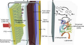 Photoelectrochemical (PEC) cell platforms typically need an electrical bias that drives the electron transfer from the photoanode to the photocathode. Here, the authors report a bias-free PEC tandem device for solar-driven redox biocatalysis.
