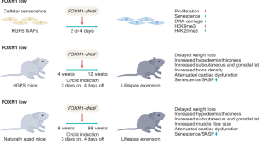 Aging is accompanied by a gradual decline of cell proliferation potential. FOXM1 is a transcription factor involved in cellular proliferation and cell cycle progression. Ribeiro et al. show that cyclic expression of a truncated form of a FOXM1 transgene in vivo can delay senescence-associated progeroid and natural aging phenotypes in mice.
