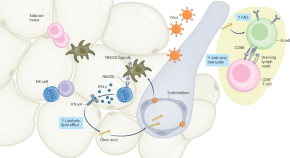Adipose tissues are increasingly recognized as dynamic hubs where immune cell–adipocyte cross-talk coordinates processes such as energy metabolism, inflammation and thermogenesis. In this issue, Krapić et al. identify a new role for the visceral adipose tissue and resident natural killer cells in tuning anti-viral immunity.