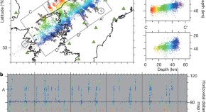 Deep seismic tremor in subduction zones has been suggested to repeat at a regular interval, migrate at various velocities and be modulated by tidal stress. Here, evidence is presented that a time-invariant interface property — possibly the ratio of brittle to ductile areas — controls tremor behaviour in the Nankai subduction zone, Japan. Where tremor duration is short, tremor is more strongly affected by tidal stress and migration is inhibited. Where tremor lasts longer, diffusive migration occurs with a constant diffusivity.