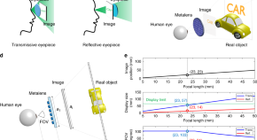 Here, the authors demonstrate a metasurface application to realize a compact near-eye display system for augmented reality with a wide field of view, full-color imaging, high resolution and a sufficiently large eyebox.