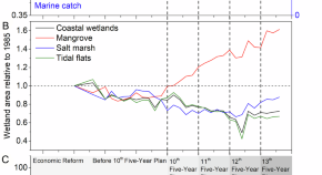 Lack of detailed technical standards, poor implementation, focusing less on good restoration designs, and adaptive management undermined the coastal restoration practices in China in last four decades, according to a text semantic mining analysis.